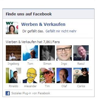 Sie haben richtig gelesen: Olaf wirb für die Konkurrenz! Schließlich erscheint sein Konterfei samt Vorname – dank des besagten Plug-in von Facebook – unter dem Satz „werben & verkaufen hat 7.861 Fans“.